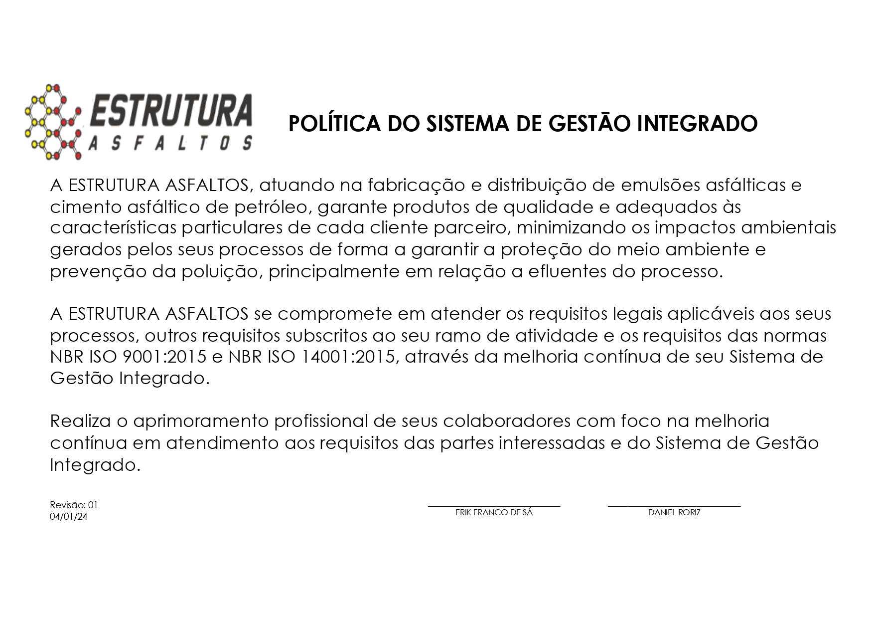Nós somos a ESTRUTURA ASFALTOS, empresa que surge no mercado como uma opção na distribuição e fabricação de emulsões asfálticas, cimento asfáltico de petróleo e asfaltos diluídos. A empresa surge do sonho de um grupo de empresários que viu a oportunidade de pluralização do mercado.